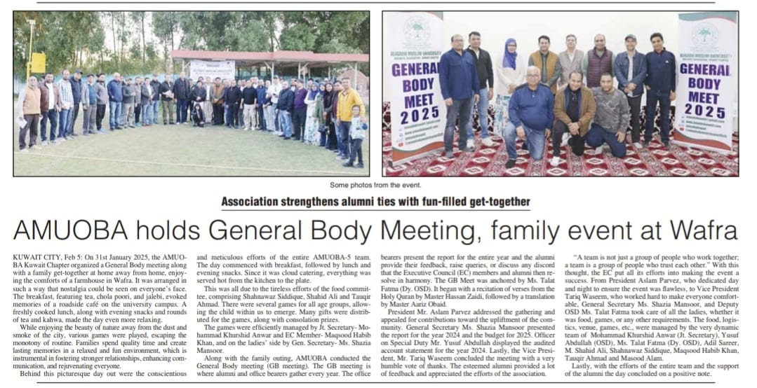 Amu Old Boy’s Association Kuwait Chapter Organized General Body Meet and Family Get Together 2025