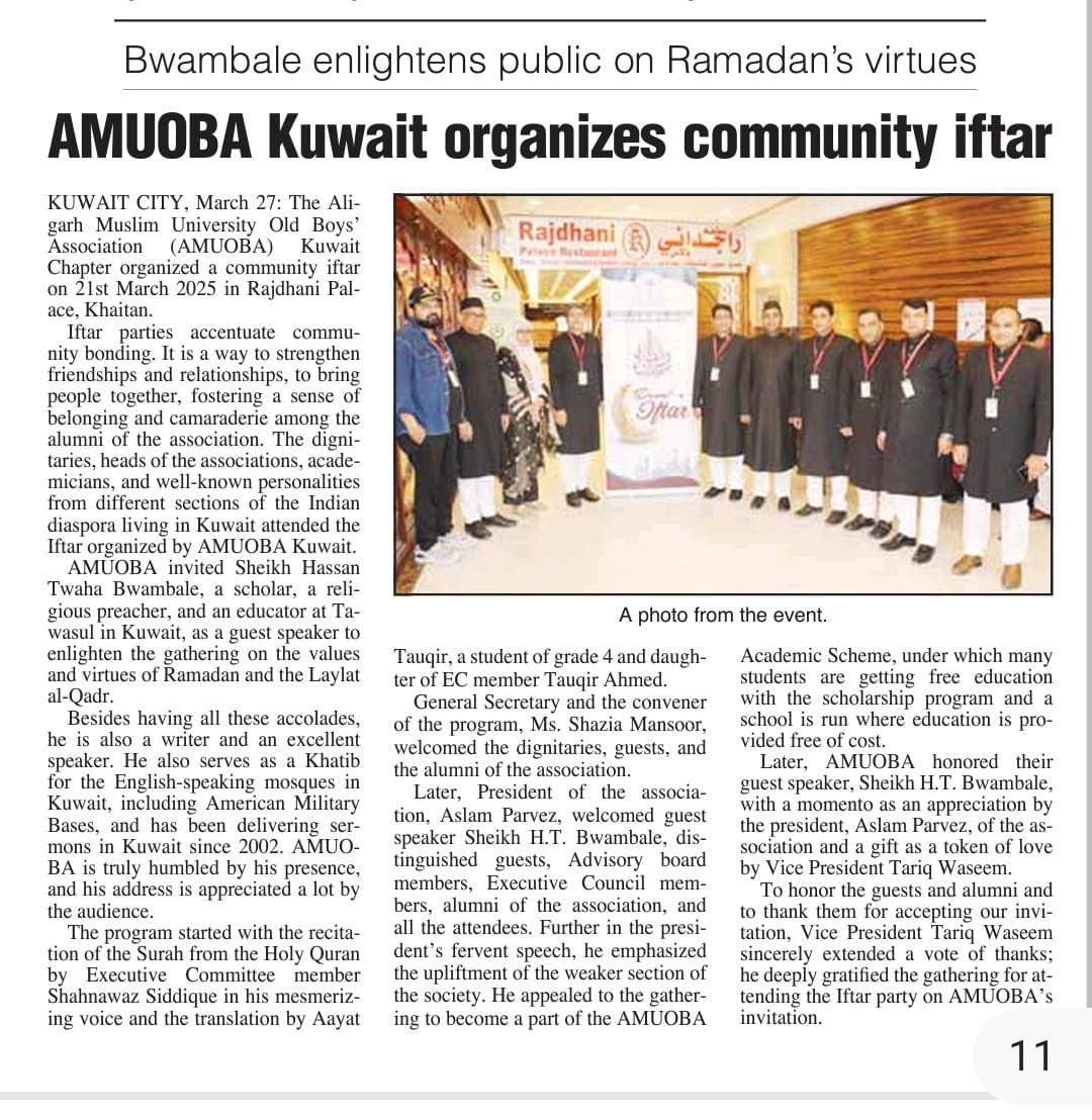 AMU Old Boys’ Association Kuwait Chapter organized an Iftar on 25st March 2025